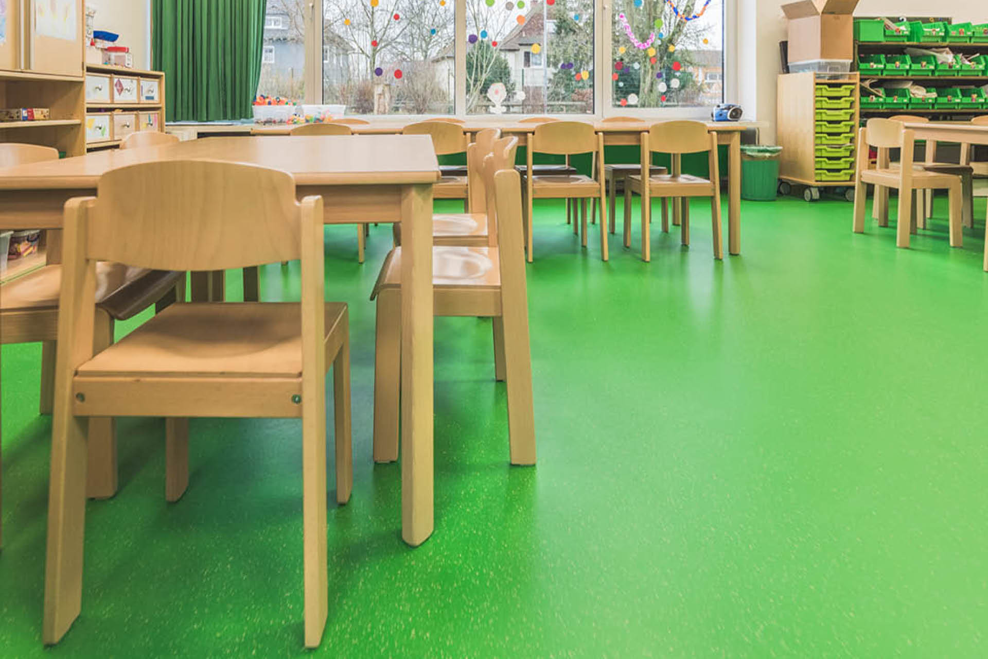 The goal was to create a hygienic, easy-care, and visually appealing surface without completely replacing the flooring and significantly disrupting the daycare center’s operations.