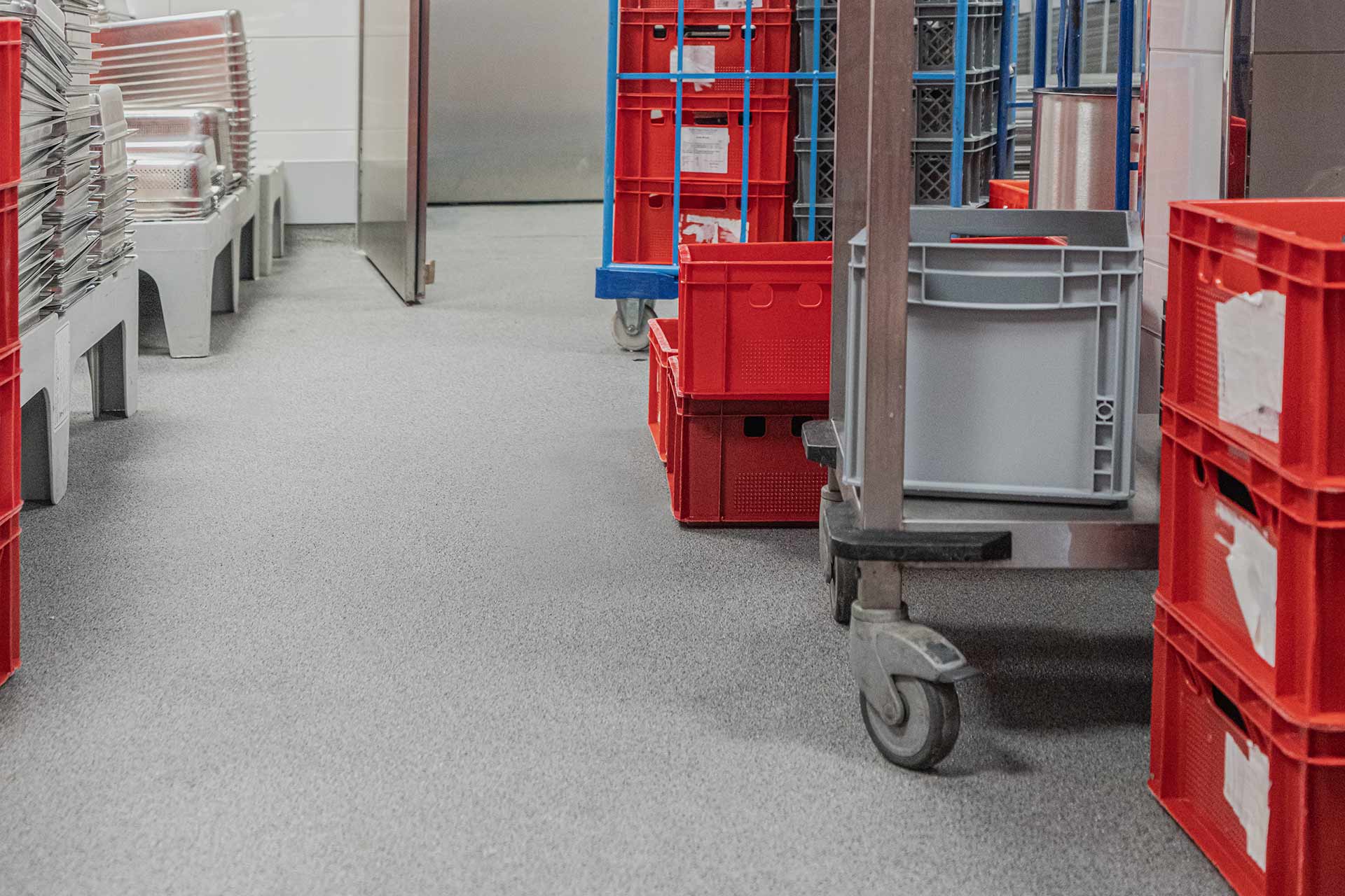 Mit dem fleckbeständigen Siegel können auch stark beanspruchte Bereiche problemlos gereinigt werden, ohne dass die Oberfläche Schaden nimmt. So bleibt der Boden dauerhaft hygienisch, belastbar und optisch ansprechend, selbst bei intensiver Nutzung in der Großküche.